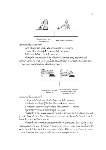 แป้นพิมพ์ ผู้ปฏิบัติงานจะไม่มีการงอข้อมือขึ้นลงหรือเบี่ยงซ้ายขวา ระดับคะแนนที่ให้จะอยู่ระหว่าง 1