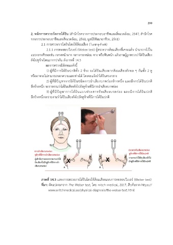 2.1.1 การทดสอบวีเบอร์ (Weber test) ผู้ตรวจวางส้อมเสียงที่เคาะแล้ว น ามาวางไว้ใน