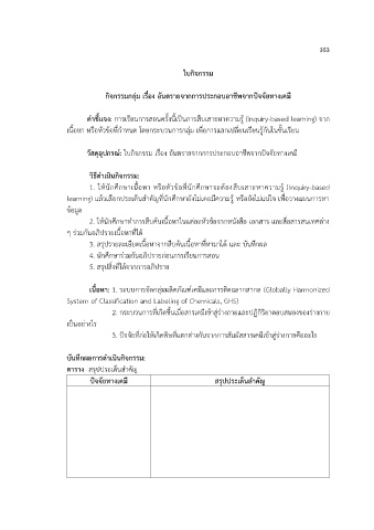 วัสดุอุปกรณ์: ใบกิจกรรม เรื่อง อันตรายจากการประกอบอาชีพจากปัจจัยทางเคมี