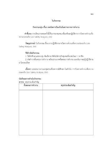 วัสดุอุปกรณ์: ใบกิจกรรม เรื่อง การปฏิบัติการการวิเคราะห์งานเพอความปลอดภัย (Job