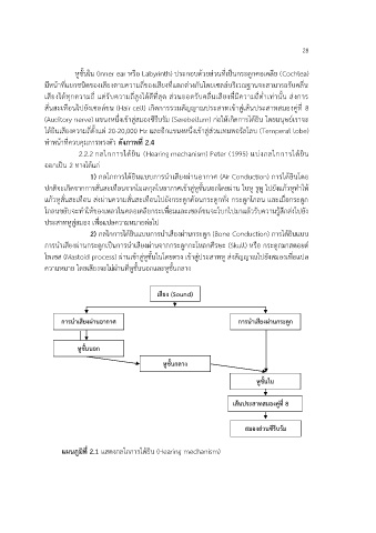 2.2.2 กลไกการได้ยิน (Hearing mechanism) Peter (1995) แบ่งกลไกการได้ยิน
