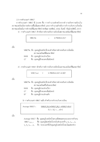 การค านวณค่า WBGT มี 2 แบบ คือ การค านวณส าหรับการท างานกับความร้อนใน