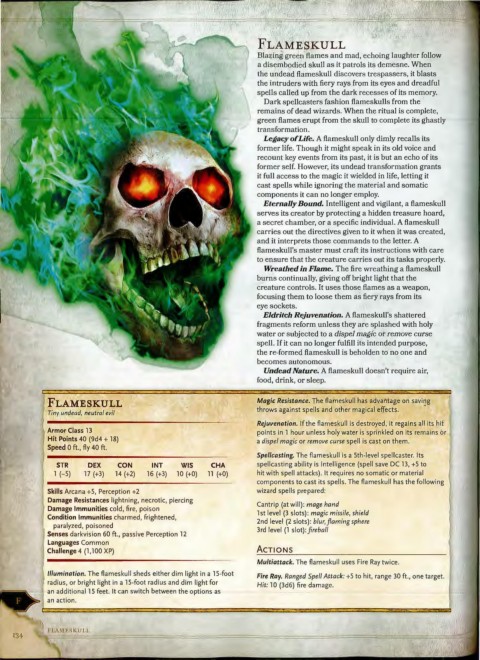 components to cast its spells. The flameskull has the following