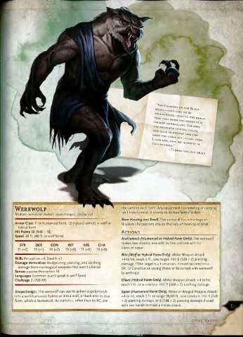 into a wolf-humanoid hybrid or into a wolf, or back into its true +4 to hit, reach 5 ft. or range 20/60 ft., one creature. Hit: 5 (1d6