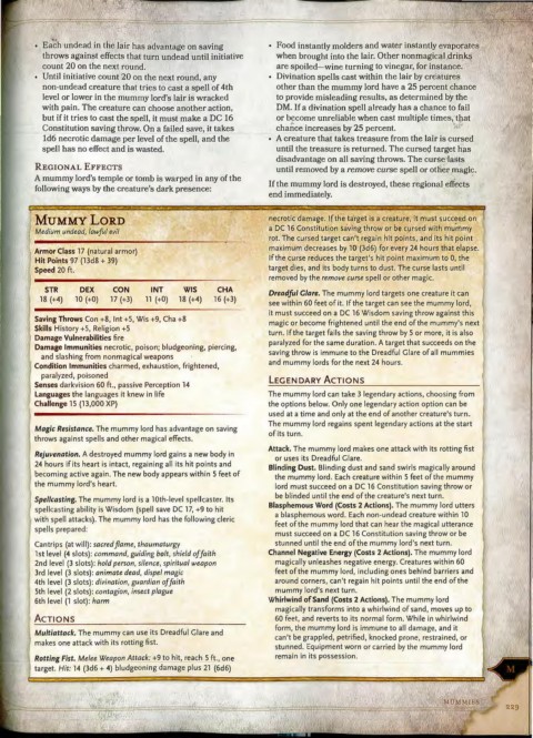 Languages the languages it knew in life The mummy lord can take 3 legendary actions, choosing from