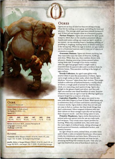 target. Hit: 13 (2d8 + 4) bludgeoning damage. bored or hungry, an ogre ventures out from its lair,