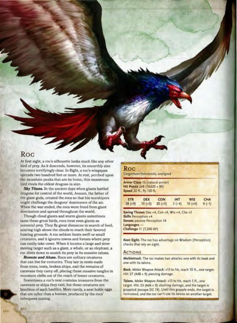 Remote and Alone. Roes are solitary creatures Multiattack. The roc makes two attacks: one with its beak and