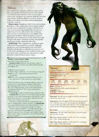 attack on its turn, with disadvantage on the attack roll unless Keen Smell. The troll has advantage on Wisdom (Perception)