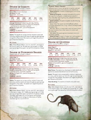 vice versa, and the swarm can move through any opening large Swarm of Wasps. A swarm of wasps has a walking speed of