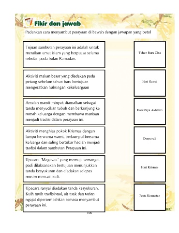Padankan cara menyambut perayaan di bawah dengan jawapan yang betul