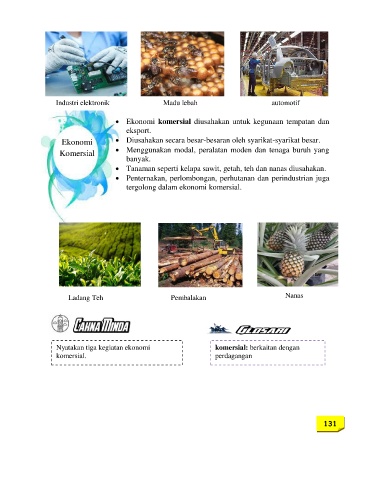 Nyatakan tiga kegiatan ekonomi komersial: berkaitan dengan