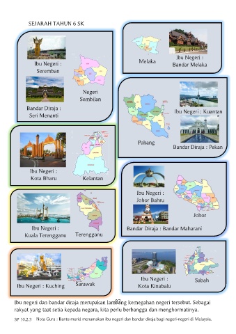 SP 10.2.3 Nota Guru : Bantu murid menamakan ibu negeri dan bandar diraja bagi negeri-negeri di Malaysia.