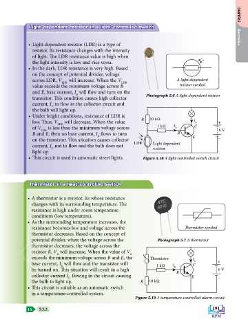 • This circuit is used in automatic street lights. Figure 5.18 A light-controlled switch circuit