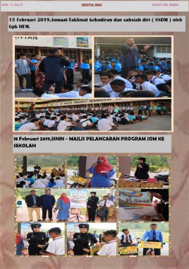 JILID 13,2019 SUDUT HAL EHWAL 15 Februari 2019,Jumaat-Taklimat kehadiran dan sahsiah diri ( SSDM ) oleh Gpk HEM. 18 Februari 2019,ISNIN - MAJLIS PELANCARAN PROGRAM JOM KE SEKOLAH
