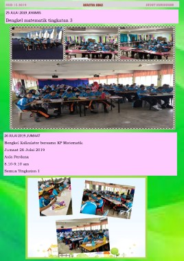 JILID 13,2019 SUDUT KURIKULUM 25 JULAI 2019 ,KHAMIS Bengkel matematik tingkatan 3 26 JULAI 2019 ,JUMAAT Bengkel Kalkulator bersama KP Matematik Jumaat 26 Julai 2019 Aula Perdana 8.10-9.10 am Semua Tingkatan 1