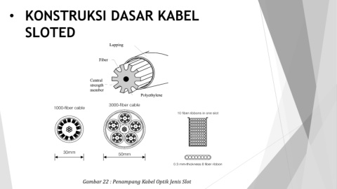 • KONSTRUKSI DASAR KABEL SLOTED Gambar 22 : Penampang Kabel Optik Jenis Slot