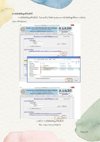 ู การเปิดไฟล์ข้อมลที่บันทึกไว้ การเปิดไฟล์ข้อมูลที่บันทึกไว้ : ในกรอบที่ 2 ให้คลิกปุ่ม Browse คลิกไฟล์ข้อมูลที่ต้องการ คลิกปุ่ม Open คลิกปุ่มตกลง ภาพที่ 27 การเปิดไฟล์ข้อมูลที่บันทึกไว้ ที่มา: https://bit.ly/37hDlcW Page | 23