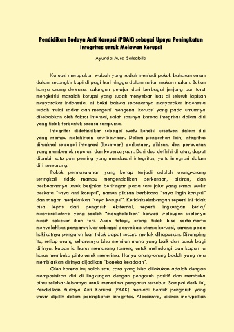Pendidikan Budaya Anti Korupsi (PBAK) sebagai Upaya Peningkatan