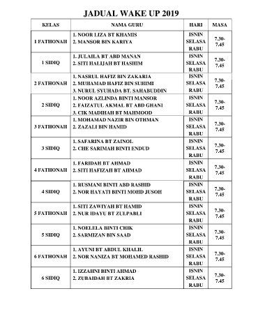 1 FATHONAH 2. MANSOR BIN KARIYA SELASA 7.30-