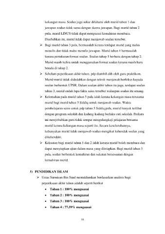 kekangan masa. Soalan juga sukar difahami oleh murid tahun 1 dan