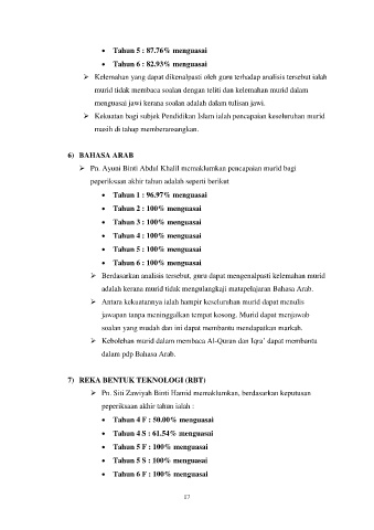 Kekuatan bagi subjek Pendidikan Islam ialah pencapaian keseluruhan murid