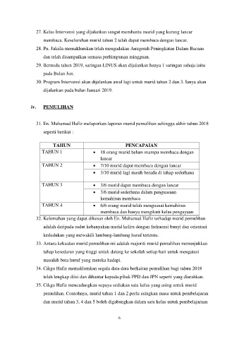 31. En. Muhamad Hafiz melaporkan laporan murid pemulihan sehingga akhir tahun 2018