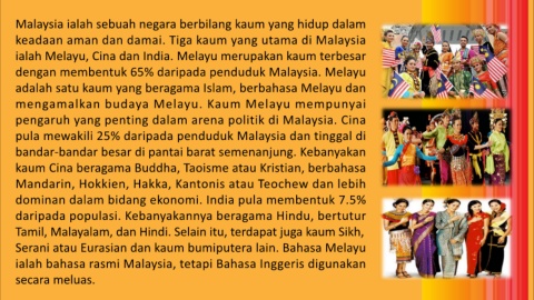 keadaan aman dan damai. Tiga kaum yang utama di Malaysia
