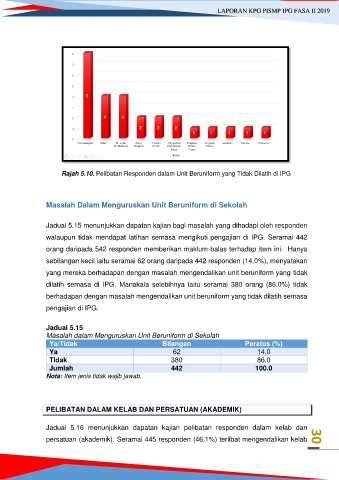 Rajah 5.10. Pelibatan Responden dalam Unit Beruniform yang Tidak Dilatih di IPG