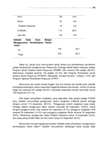 seramai 55 responden (14.4%) dan pengguna rangkaian Maxis seramai 33 responden