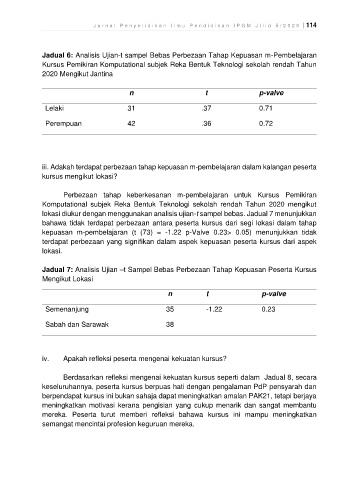 Jadual 6: Analisis Ujian-t sampel Bebas Perbezaan Tahap Kepuasan m-Pembelajaran