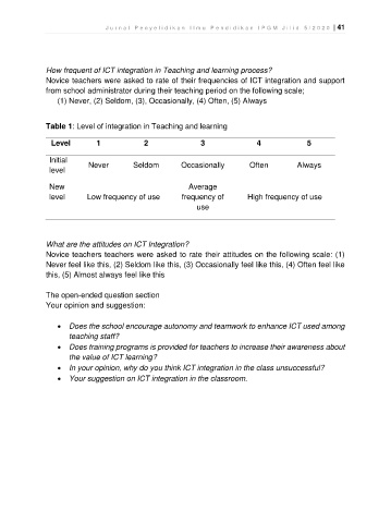Novice teachers were asked to rate of their frequencies of ICT integration and support