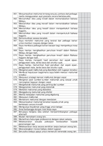 069 Saya mampu menghasilkan penulisan kreatif dalam Bahasa