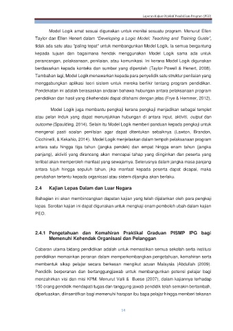 outcome (Spaulding, 2014). Selain itu Model Logik memberi panduan kepada pengkaji untuk