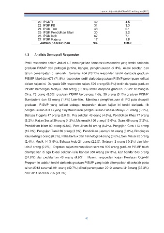PISMP lelaki dan 675 (71.9%) responden terdiri daripada graduan PISMP perempuan terlibat