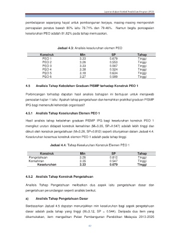 Jadual 4.3: Analisis keseluruhan elemen PEO