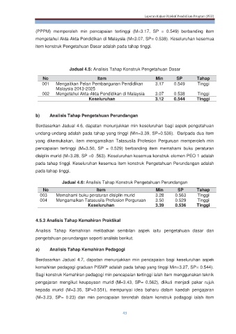 Jadual 4.5: Analisis Tahap Konstruk Pengetahuan Dasar