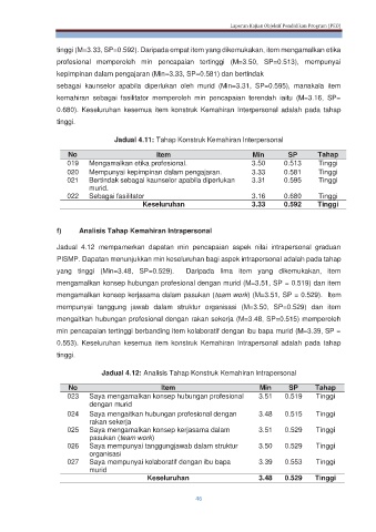 Jadual 4.11: Tahap Konstruk Kemahiran Interpersonal
