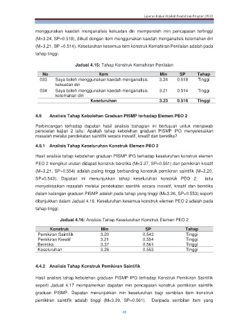 Jadual 4.16: Analisis Tahap Keseluruhan Konstruk Elemen PEO 2