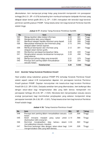 adalah seperti Jadual 4.18 mempamerkan dapatan min pencapaian konstruk Pemikiran