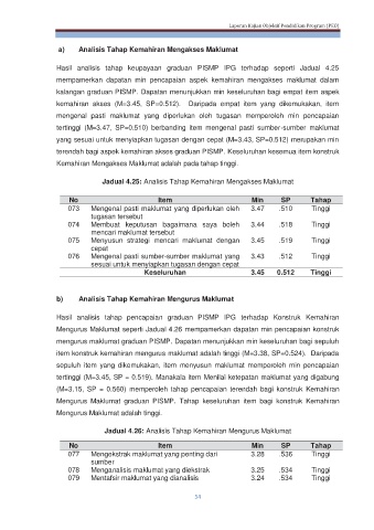 Jadual 4.25: Analisis Tahap Kemahiran Mengakses Maklumat