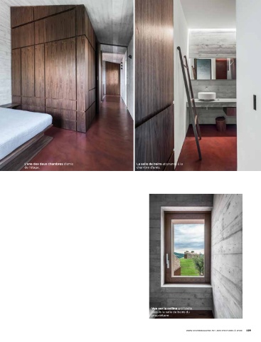 L’une des deux chambres d’amis La salle de bains attenante à la de l’étage. chambre d'amis. Vue sur la colline artificielle depuis la salle de bains du propriétaire. www.avivremagazine.fr | architectures à vivre 129