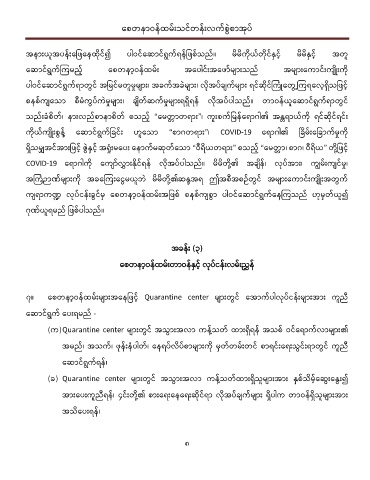 (က) Quarantine center မျာ်းတ င အသ ာ်းအလာ ကနို့်သတ် ထာ်း ှ န် အသေ် ဝင်စ ာက်လာမျာ်း၏