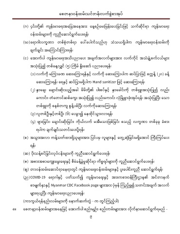 ၈။ စေတနာ ဝန်ထမ််းမျာ်းအစနပဖင စအာက်ပေါ ေည််းမျဉ််း၊ ေည််းကမ််းမျာ်းအာ်း လ ုက်နာစဆာင် ွက် မည -