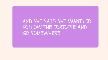 AND SHE SAID SHE WANTS TO FOLLOW THE TORTOISE AND GO SOMEWHERE.