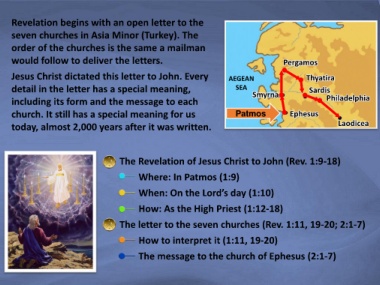 The letter to the seven churches (Rev. 1:11, 19-20; 2:1-7)