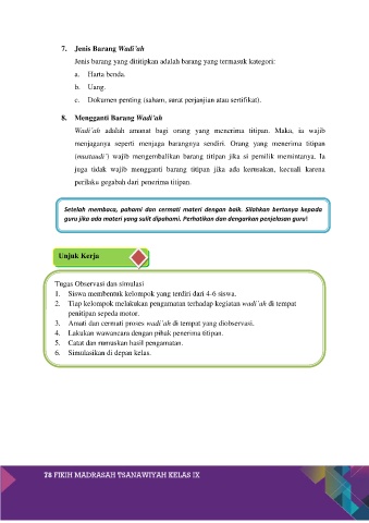 2. Tiap kelompok melakukan pengamatan terhadap kegiatan wadi’ah di tempat