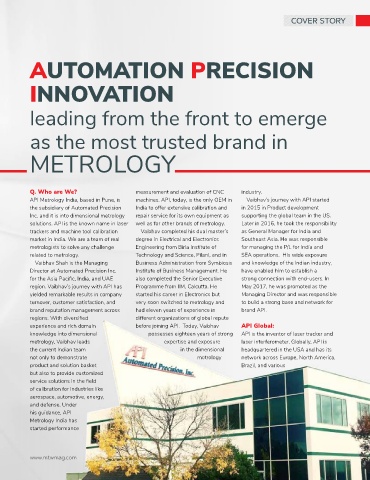 API Metrology India, based in Pune, is machines. API, today, is the only OEM in Vaibhav’s journey with API started