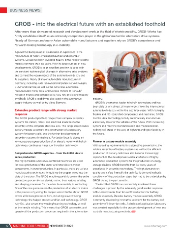 supply industry as well as by Valeo Siemens. GROB is the market leader in hairpin technology and has