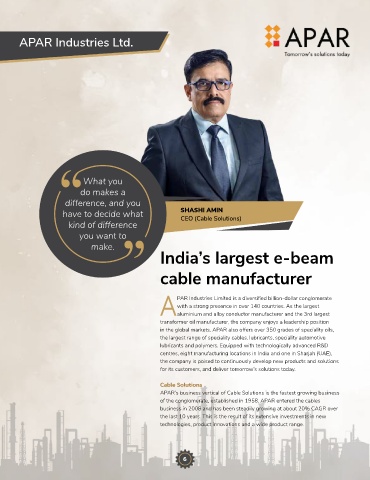 APAR’s business vertical of Cable Solutions is the fastest growing business