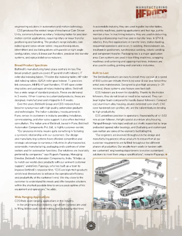 configuration, rotary & linear part handlers, precision link transfer and component transfer. Packaging too is a major application